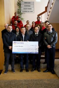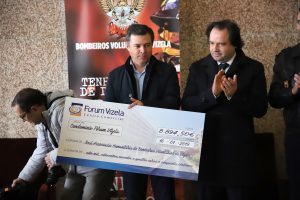 O valor angariado na Pista de Gelo, que esteve em funcionamento no decorrer do programa Vizela Cidade Natal 2018 – “Um Novo Natal no Vale”, reverteu para a RAHBVV. Os Bombeiros de Vizela estiveram responsáveis pelo funcionamento do espaço e a sua participação foi agora recompensada com a entrega de um cheque no valor de 8.894,50 euros. Realizou-se esta manhã a entrega do cheque, pelo condomínio dos espaços comerciais do Fórum Vizela – Condomínios & Companhia aos Bombeiros Voluntários de Vizela.